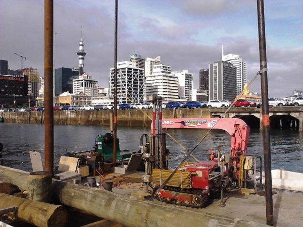 We have carried out many overwater projects on floating barges undertaking DMT and dynamic probe testing, including; Opua Marina, Greenhithe Bridge Watermain Duplication, Tairua Wharf development. Our small rigs are ideal for operating on barges for overwater work. DMT testing and Dynamic Probing can be performed on floating barges. A jackup barge is required for CPT work.